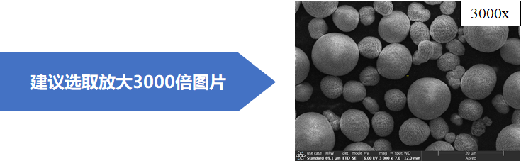 ★小颗粒(3.0+μm)选用20000x,大颗粒(10.0+μm )选用10000x或者20000x,同一系列统一颗粒尺寸;