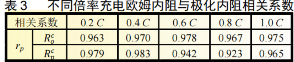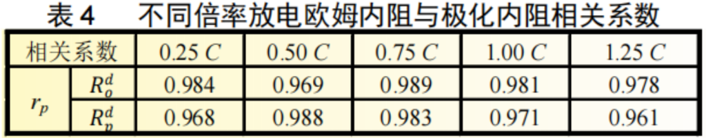 3.2 不同倍率下充放电欧姆内阻和极化内阻测试结果相关性分析