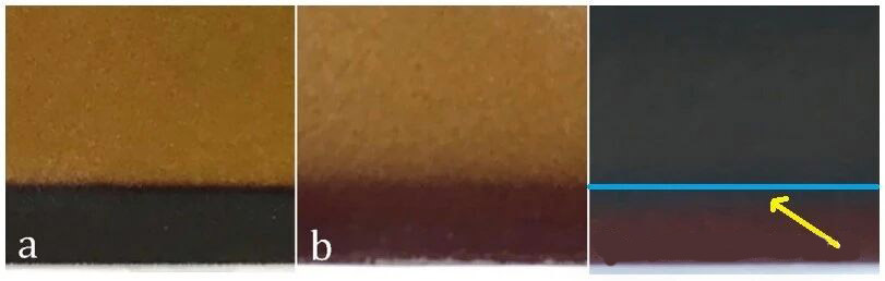 图c,为满电存储一周后,然后放电,放电结束便拆解电池。从c图可以看出,overhang下方依旧为红色,但相比b图,颜色有所变淡,说明有离子转移。另外overhang上方区域,箭头所指区域,颜色几乎变成黑色,说明此处的离子转移较多。从C图的结论,我们可以得出:即使放电后,Overhang区域仍存在未脱嵌的锂。也就是说,从正极正对着的负极区域横向扩散到overhang区域的锂离子,并不能完全回到正极,而这些Li会持续堆积,形成析锂。而如果overhang比较小,它是可以回到正极的。因此,Overhang区域并不是越大越好,需要满足设计要求的情况下,尽可能减小其区域,以避免析锂发生。