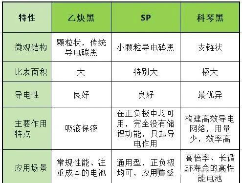 乙炔黑、SP和科琴黑的区别,以及它们在锂电池中的应用