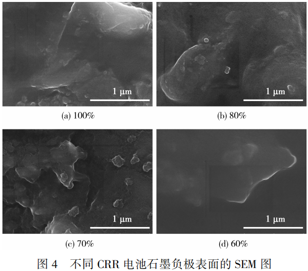 不同CRR电池石墨负极的SEM图见图4。