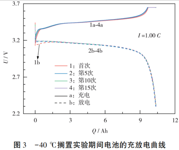 本文作者对-40℃搁置后的锂离子电池进行充放电,重复 15 次操作,研究低温搁置后的老化行为及内在机制。