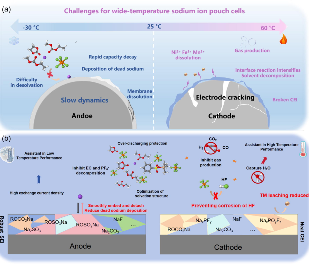 商用软包钠离子电池高效电解质设计:全气候适用型碳酸酯基电解液开发