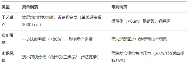 不管是复合铜箔还是常规铜箔,都有它们所对应劣势和难点: