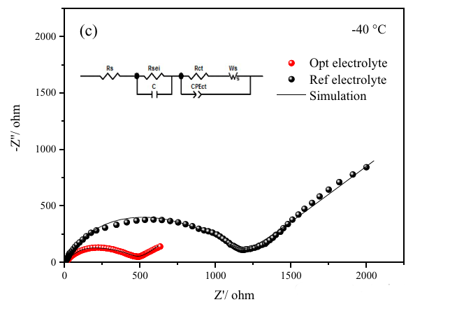 采用LiBF₄、LiODFB(二氟草酸硼酸锂)、LiTFSI(双三氟甲基磺酸亚胺锂)替代传统LiPF₆,可降低电荷转移阻抗。例如,LiTFSI电解液在-40℃电导率达2 mS/cm。