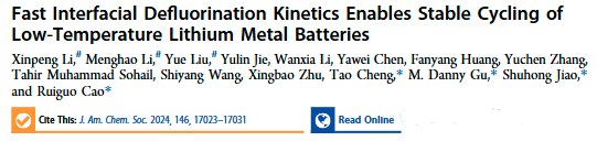 该文章通过使用四氢呋喃(THF)和2-甲基四氢呋喃(2-MeTHF)作为对比溶剂,揭示了局部超浓电解液的快速界面脱氟动力学在调控锂金属生长和锂金属负极稳定性方面的关键作用,实现了-30 ℃低温下无枝晶的锂沉积形貌以及约99.63%的锂沉积/剥离库仑效率。