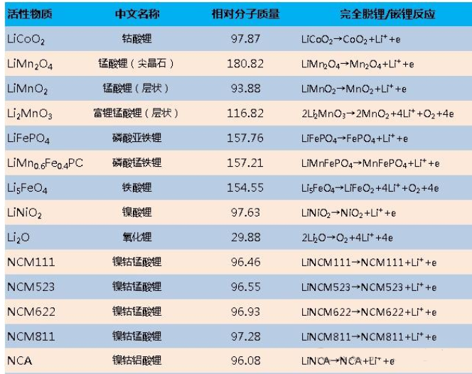 电极材料理论比容量指单位质量材料中锂离子完全参与反应产生的容量值。