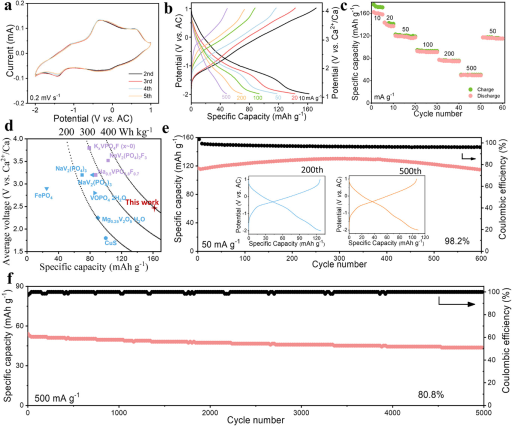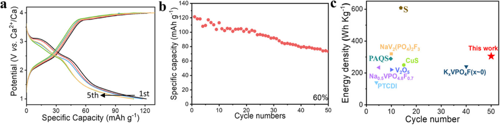 实现聚阴离子正极的多电子反应用于高性能钙电池