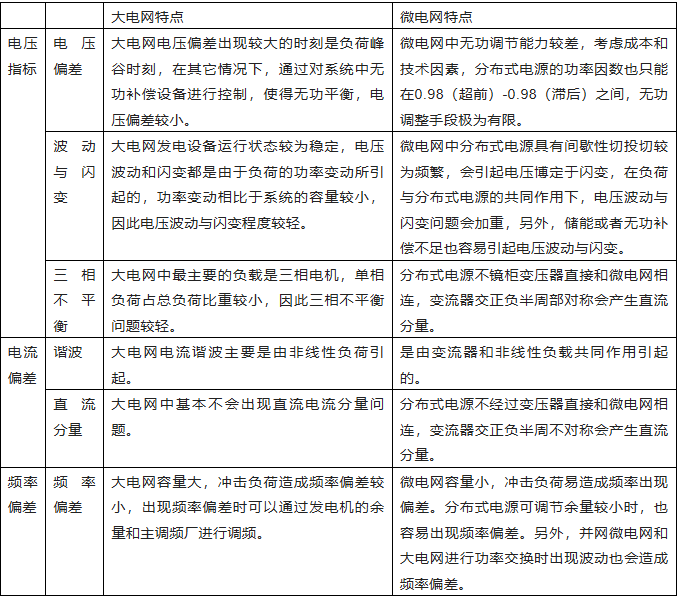 可见,微电网的系统结构与元件特性,以及与大电网的并网关系,决定了微电网的电能质量问题与传统电网的电能质量研究与解决策略并不相同。
