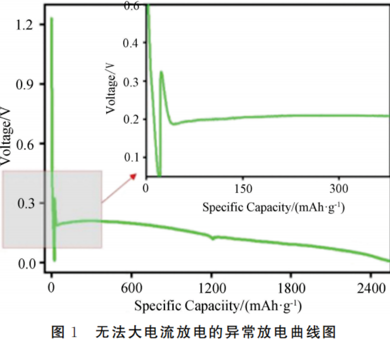 在材料研发阶段发现部分扣式电池无法正常放电(图1),导致无法准确快速的得出材料性能结果。本文通过针对锂离子扣式电池无法正常大电流放电从原理上分析原因,并且通过试验排查最终确定了扣式电池组装的策略。