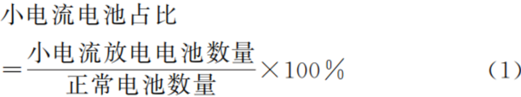 由于扣式电池的组装为手工操作,组装的过程中会存在操作上的失误导致电池无法正常工作,在计算小电流电池占比时,应将失败的电池排除。因此小电流电池占比由公式(1)计算: