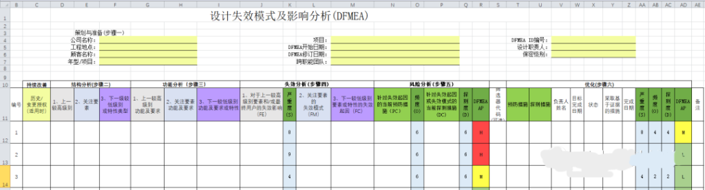 理解一下上面的步骤,第一步,在立项之初FMEA也开始策划;