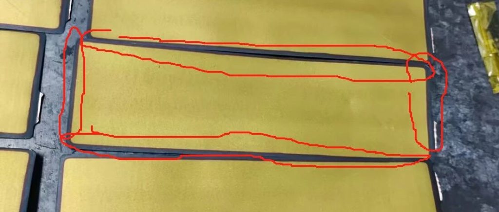 图1 负极标红区域为负极比正极的OVerhang区域