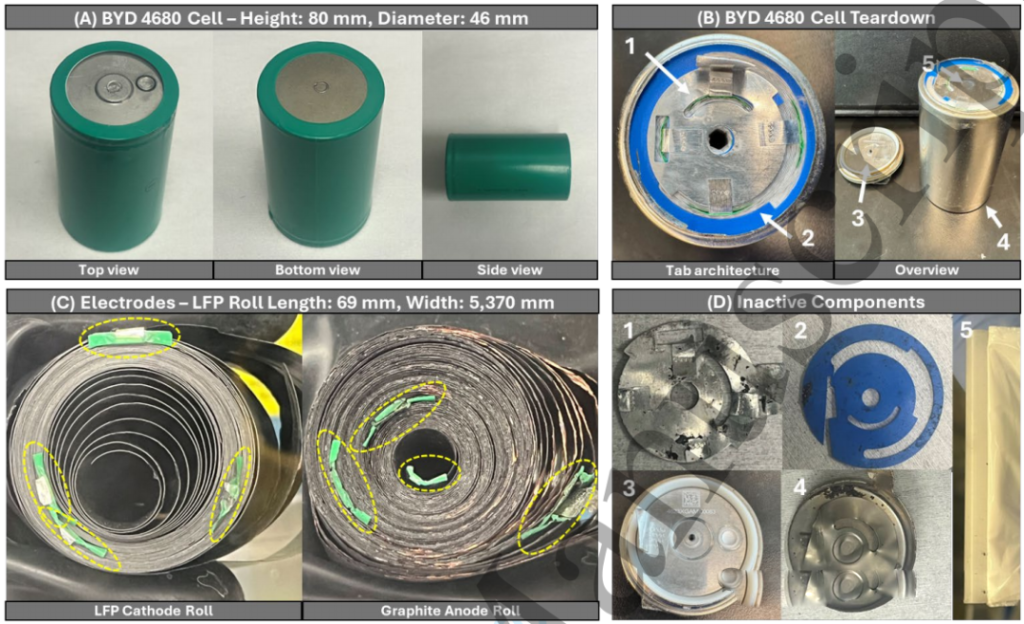 图1. 比亚迪4680的尺寸、拆卸、内部特征和非活动组件概述。