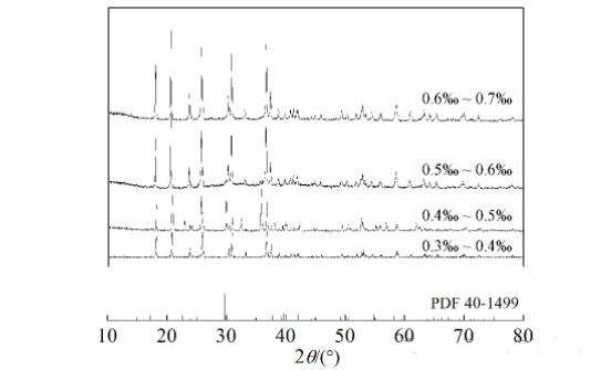 从图中粒径的分布来看,0.4-0.5‰和0.6-0.7‰的粒径较大。文献中说是用循环后的极片剥离下粉体后测试,首先极片含有PVDF、导电剂、正极材料,因此这样的测试误差应该还是蛮大的。