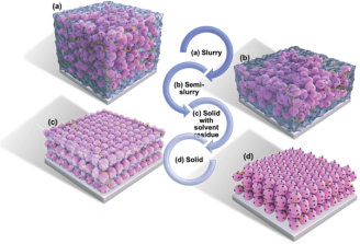 图1典型的电极干燥过程,从浆料相到半浆料相,然后进一步去除溶剂,最后得到致密的固体涂层膜。