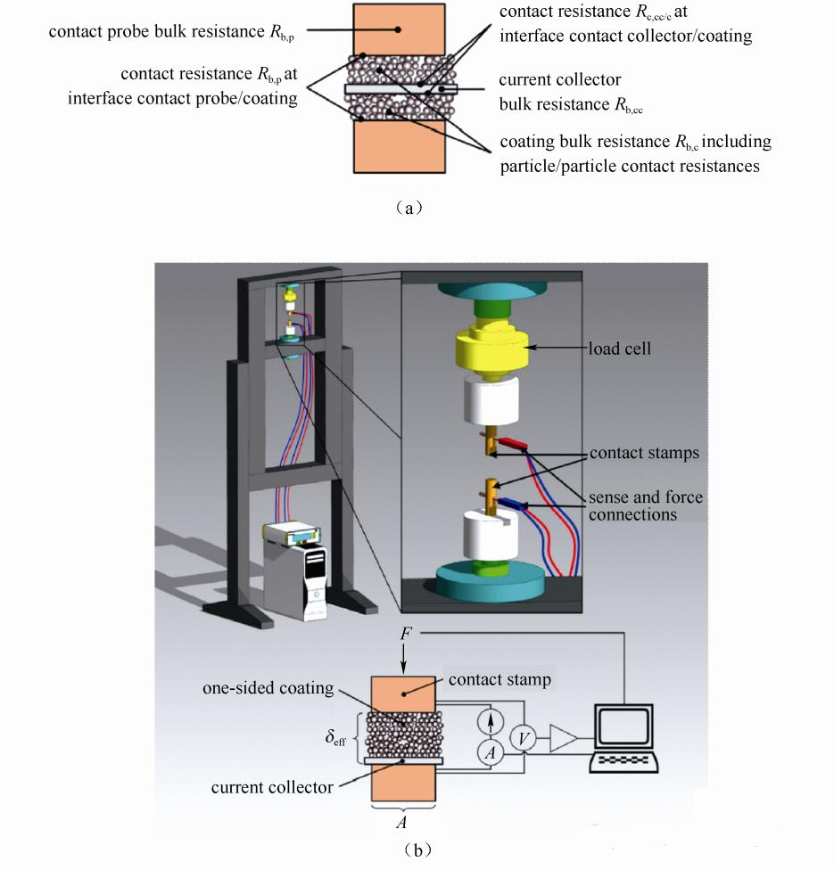 在文献中,四探针法常用于确定电池极片的电子电导的绝对值,这是由于四探针法消除了探针和样品(压实的片或涂层)之间的接触电阻。但是有两点需要注意:
