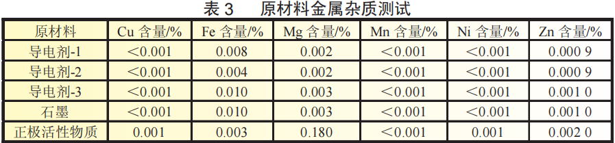 除了对原材料进行测试外,还对自放电严重的电池零部件进行了ICP测试,并与未组装电池的零部件进行对比,结果如表4所示。