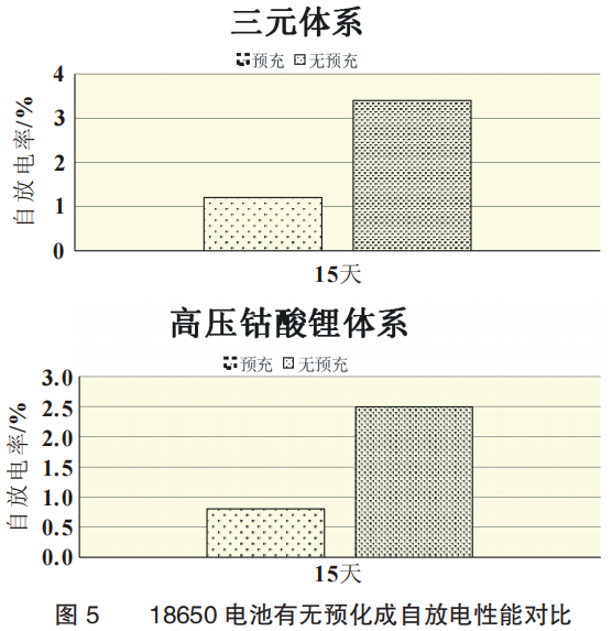 对三元体系及高压钴酸锂体系18650电池同样进行了有无预化成工艺的对比测试,如图5所示。