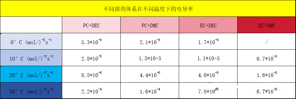电解液的导电性和黏度影响锂离子在电解液中的扩散系数和电池倍率性能。热稳定性和化学稳定性影响电池循环性能和安全性能。