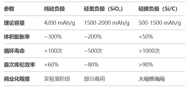 硅,硅氧,硅碳负极三者的区别和优劣对比
