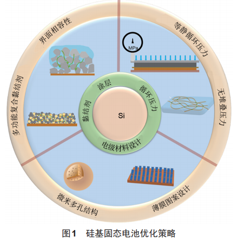 利用结实且有弹性的黏结剂将硅基材料、导电剂和固态电解质黏合起来,来增强电极与电解质之间的结合强度,这是缓解硅基负极界面失效的一个实用方案。
