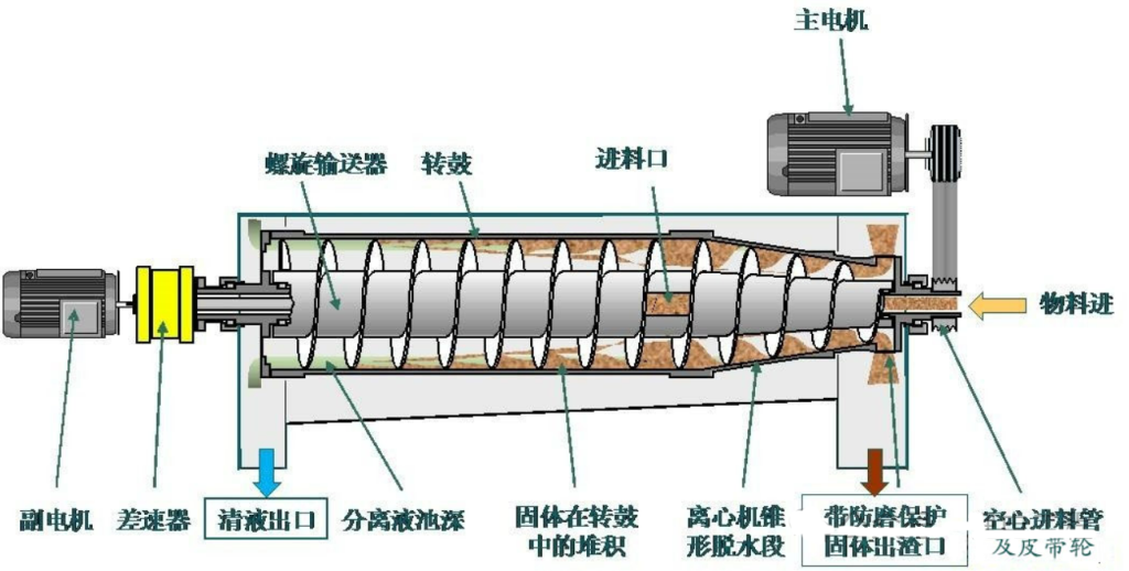 结构特点:结合离心力与压力过滤,通过转鼓旋转产生离心力辅助固液分离。