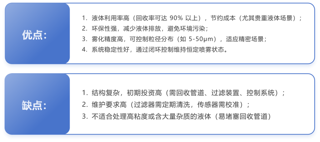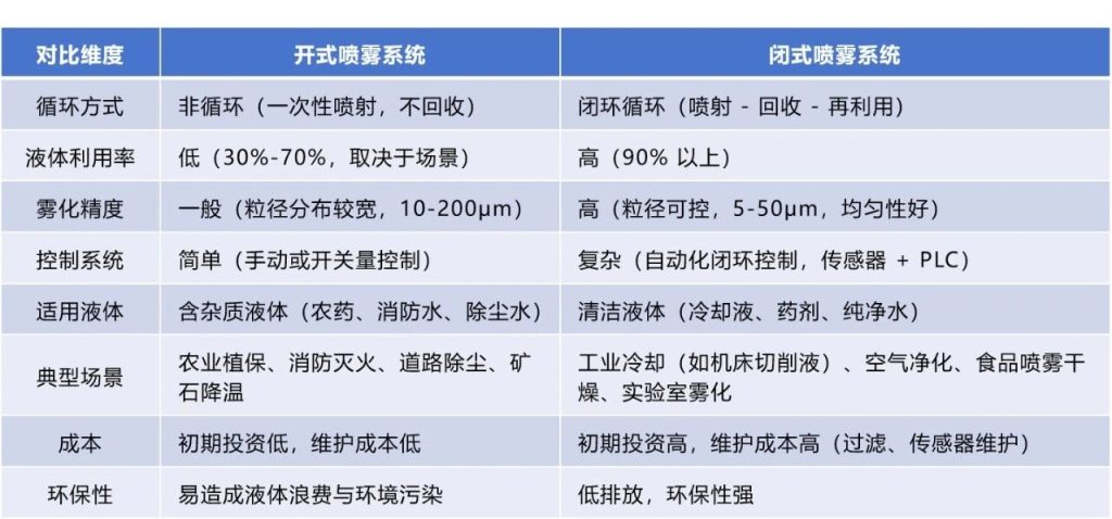 优先闭式系统:当液体成本高、环保要求严格、需精准控制雾化效果(如粒径,喷雾量)时