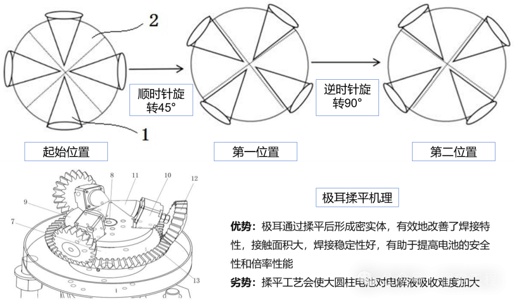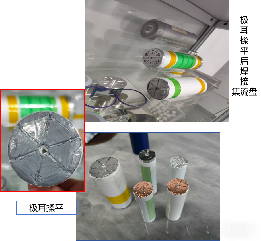6.激光焊:焊接盖帽,盖帽上附有防爆片和 PCT 热敏元件,防爆片可防止电池爆裂,PCT 热敏元件在电池内部温度上升过高时会自动保护,再用激光焊机将盖帽及卷芯极耳进行焊接,为注液、盖帽封口做准备。