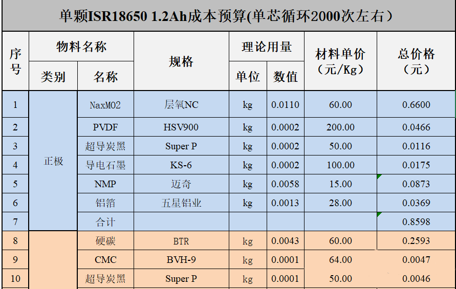 今天为大家带来一篇钠离子SIB 18650 1.2Ah圆柱电芯的材料消耗明细、材料成本,以及目前最终售价和利润的计算数据;