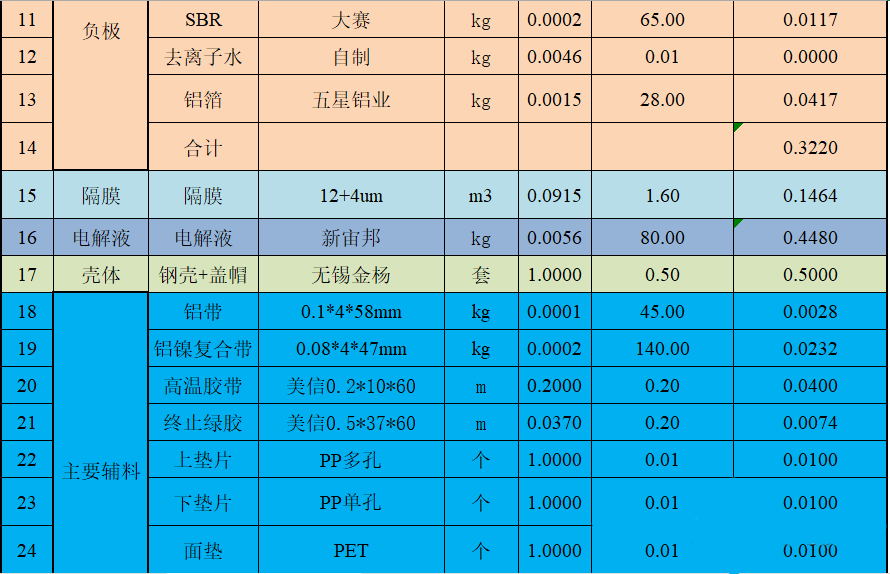 1、因为目前钠离子电芯相关产业链不完善,表中各主要原材料价格以及所有计算数据为目前数据(2023年6月3日)。但随着产业链逐渐完善和工艺逐渐成熟,价格会越来越低