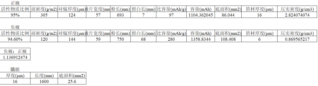钠离子电池和锂离子电池设计上类似,但很多地方不同,如正负极面密度、压实密度和克容量等。本人给出一份SIB 18650 1.2Ah具体设计工艺参数,供感兴趣的做工艺设计朋友参考。
