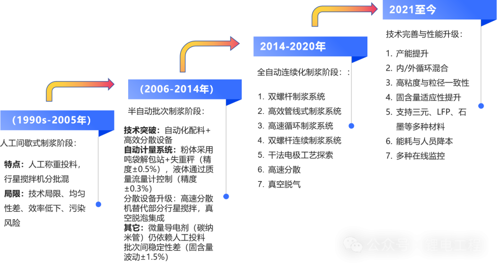 锂电正负极(投料)制浆系统随着锂电池行业的发展而不断演进,以下是其主要发展历程