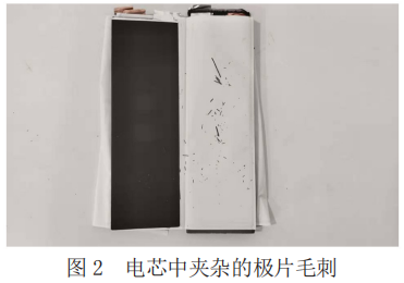 (1)毛刺。叠片工序没有检测出短路的电芯,冷热压工序中,在强制外力的作用下,电芯被挤压,内部空间发生压缩,之前存在于内部的毛刺这时很可能刺穿隔膜,造成短路。