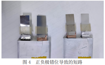 (2)叠片电池由多片正负极组成,容量越高,电芯越厚。极耳焊接时,为了将所有裸露的集流体焊接在一起,位于电芯外侧的极耳会被一定程度的向外拖拽,这就可能造成隔膜无法完全包裹住极片,存在正负极接触的可能。