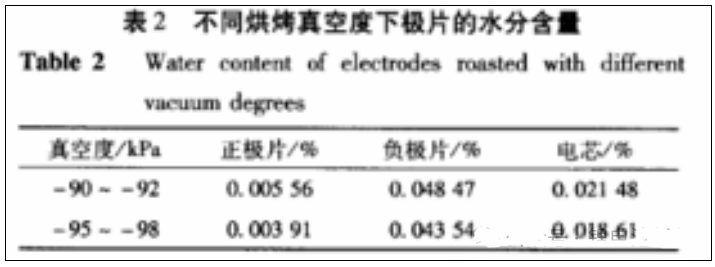 对于负极:负极溶剂为水,负极粘结剂易溶于水,与水分子的结合相对牢靠,增加真空度对负极片中水挥发的影响有限,所以很大程度上依靠于烘烤时间的加长。