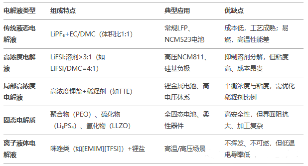 3.常见电解液类型及适用场景