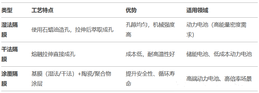 储能电池:干法隔膜(如中兴新材产品)因成本低、耐高温性优,广泛应用于大型储能系统。