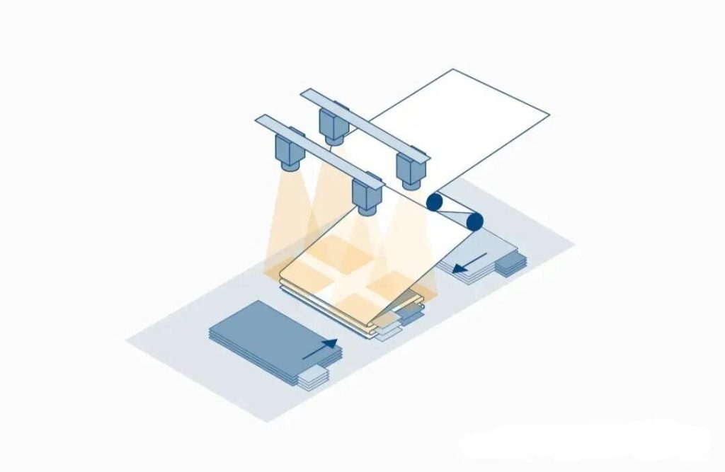 - 一个精准控制的叠片台会进行往复运动,使隔膜呈现连续的“Z”字形折叠。