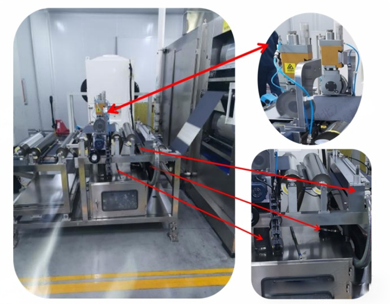 3、 在线检测:激光测厚仪(精度 ±1μm)实时监测极片厚度,异常时自动停机并调整参数。
