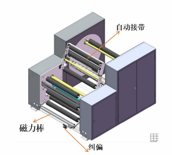 1、 张力控制:放卷与收卷张力动态匹配(±2%),防止极片拉伸变形,设备采用磁粉制动器实现张力闭环控制。