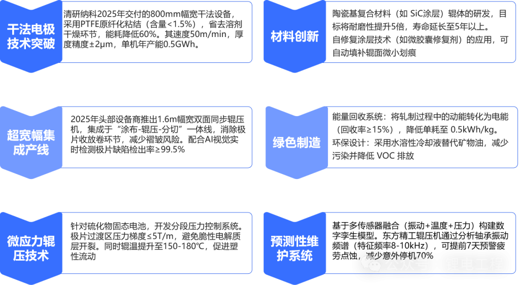 辊压技术正围绕“极片高致密化”,“制造零缺陷”与“产能高适应性广”目标展开新一轮创新: