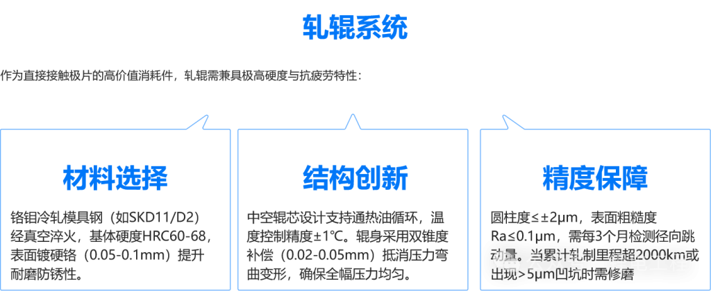 作为直接接触极片的高价值消耗件,轧辊需兼具极高硬度与抗疲劳特性: