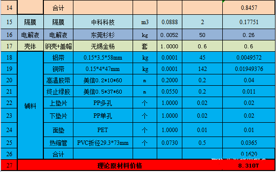 锂离子电池成本价格及利润核算方法(含具体数据)