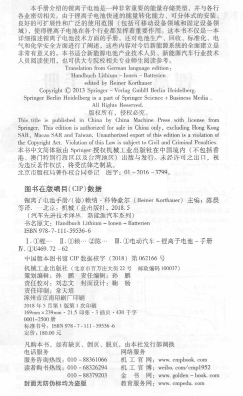 锂离子电池制造工艺原理与应用(杨绍斌,梁正)