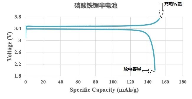 全电池:负极一般为石墨,所有的锂都由正极提供,一部分锂离子用于在负极表面形成SEI膜,那么重新回到正极的锂离子就少了一部分。下图为磷酸铁锂软包电池的首次充放电曲线,充电阶段由化成-分容组成。