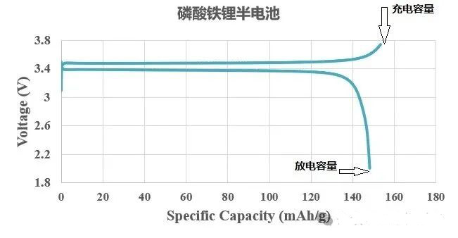此时正极半电池放电容量<充电容量是因为正极首次脱锂之后材料结构会发生微弱变化,导致部分锂离子不能全部嵌入到正极。