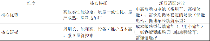 • 中高端动力电池(如新能源汽车乘用车、高端商用车):对压实密度、循环寿命、安全性要求高,可接受一定成本溢价;