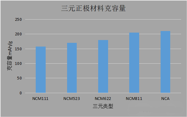 NCM 三元正极材料的结构源于LiNiO2,结构通式LiNixCoyMn1−x−yO2中 x+y+z=1),NCM材料中 Ni 的含量主要决定其电化学性能和结构稳定性,随着Ni含量的增加,存储容量随之增加,电极稳定性随之降低;Mn 不参与电化学反应,但起到维持电极材料结构稳定性的作用,可提升电极材料的安全性,但Mn的持续增加会破坏NCM三元正极体系的层状结构;Co能起到稳定结构和降低电阻的作用,但过多的钴含量会降低 NCM 三元正极材料的容量。因此,在NCM体系中,Ni、Co、Mn的不同比例会对材料的可逆容量以及循环稳定性产生重要影响。