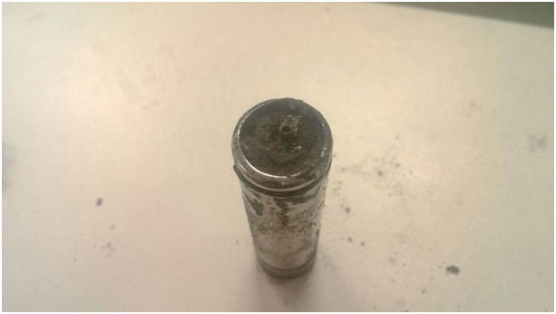 锂离子测试UL1642中有喷射测试 (Projectile Test),即要求电池被高温加热时不能有电芯或电池的部分穿透筛网或整个电芯或电池突出筛网,即不能有异物喷出较大距离。有中心针可以增加一个气体喷出的通道,如此一来卷芯就不会喷出。如下图是有中心针的圆柱电池,燃烧后没有物质喷出。